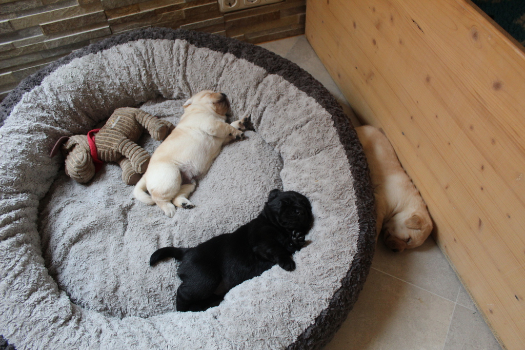 Mittlerweile wurden die Welpen das erste Mal entwurmt, nehmen stark an Gewicht zu und beginnen schon langsam die Augen aufzumachen!